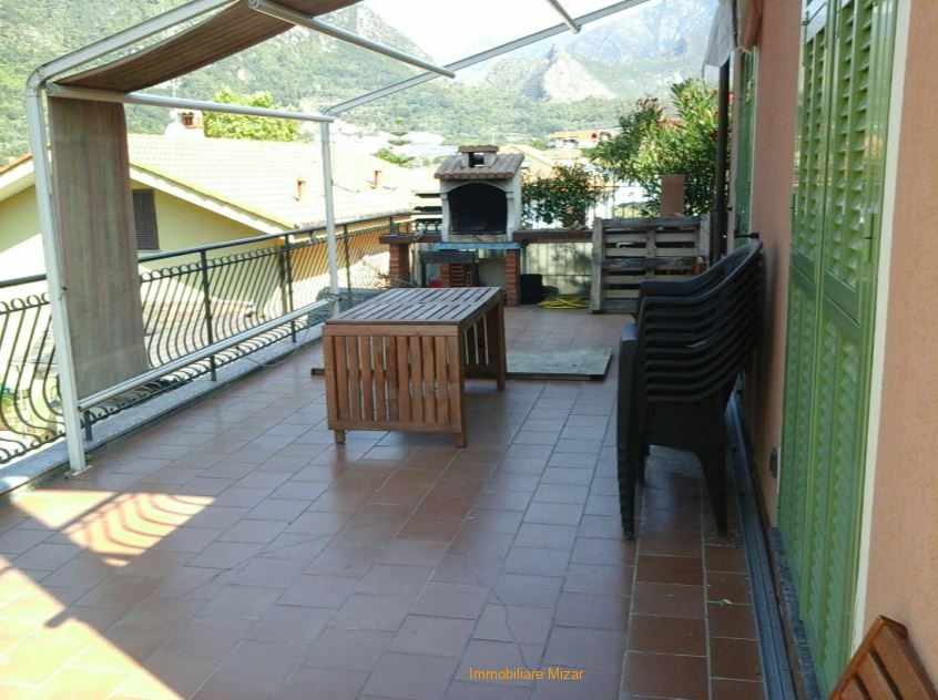 RIF V1 MAR Casa indipendente in località Porra di Ventimiglia, comoda ai servizi, disposta su due livelli e così composta: Piano terra - cucina abitabile, soggiorno con camino, bagno con vasca, camera da letto, ampio terrazzo e giardino che all'occorrenza può essere adibito anche a parcheggio per più auto. Piano primo - 2 camere da letto, bagno con doccia, 1 loggia, 1 portico e 1 terrazzo. La casa è interamente recintata ed autonoma. La proprietà comprende anche un box auto con soppalco. Richiesta € 330.000 completamente arredata con mobilio eseguito interamente su misura.