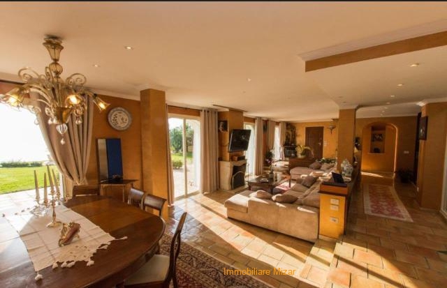 Piano Terra: ingresso, ampio soggiorno di 130 mq con giardino d’inverno e studio, cucina abitabile, dispensa, camera matrimoniale con bagno, bagno di servizio e ulteriore camera da 55 mq con due letti matrimoniali e bagno pertinenziale.