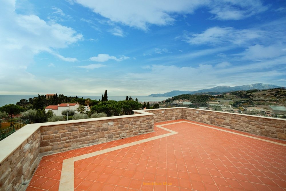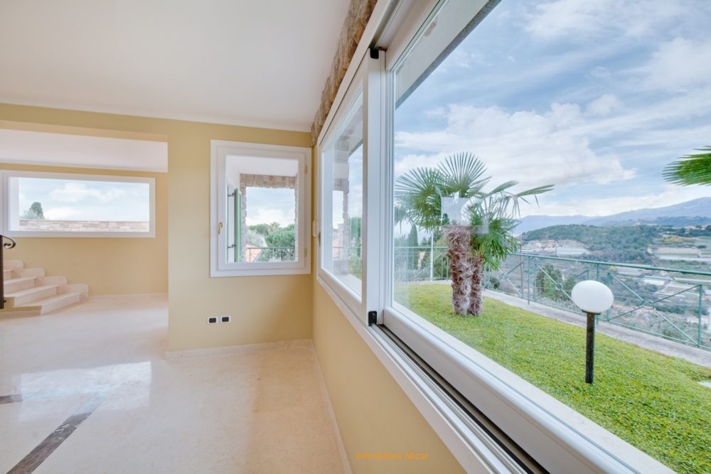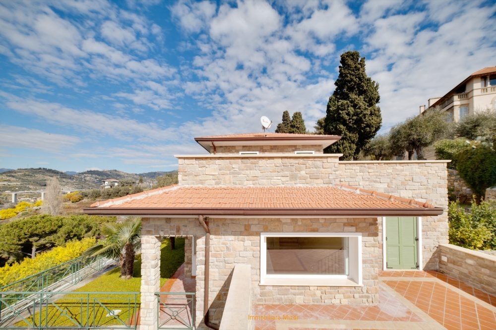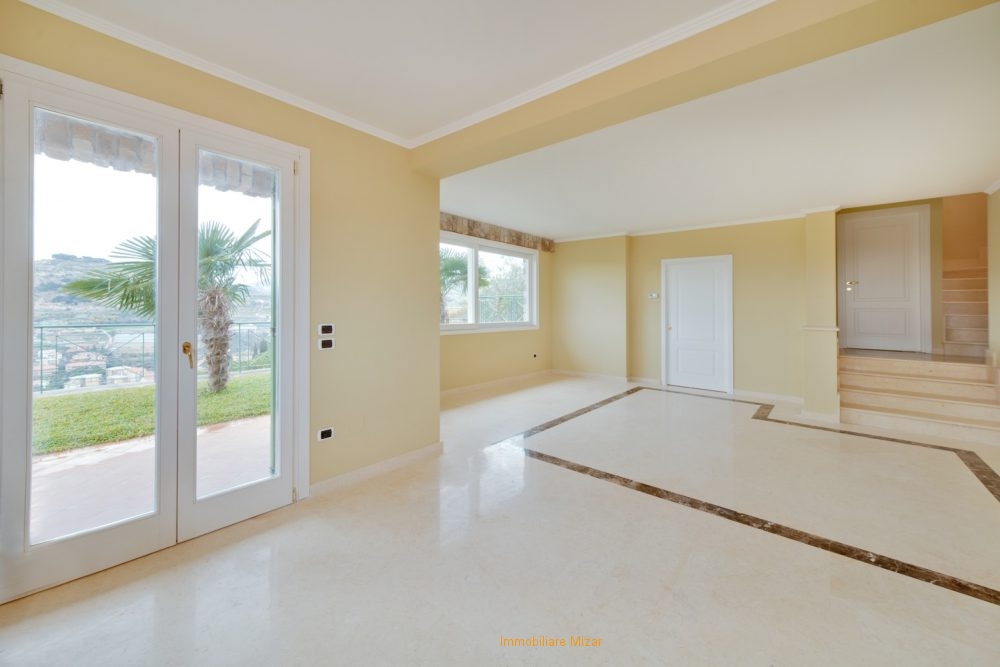 rif: su v1- Bordighera, situata in prima collina, zona più esclusiva della città delle palme, bellissima villa bifamiliare di nuova costruzione, suddivisa in ampio tri- e quadrilocale con terrazzi, portici, garage e cantine.
