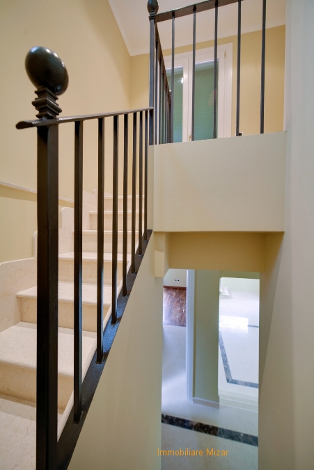 La villa è suddivisa su diversi piani per una superficie totale di 252 mq., + portici 11,00 mq. + terrazzi 90,50 mq., garage e cantina 38,50 mq., giardini e piazzali 1.140 mq. ca., all’interno della proprietà possono parcheggiare 2 autovetture, all’interno del garage 2 autovetture in appositi posti auto. In caso di necessità altre 3 – 4 autovetture possono essere parcheggiatee nei piazzali interni.