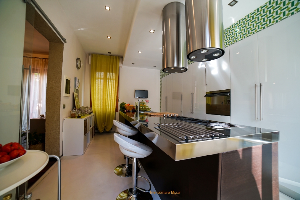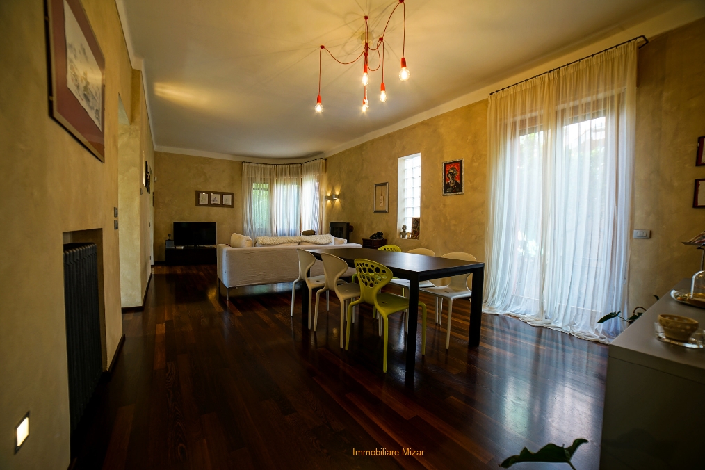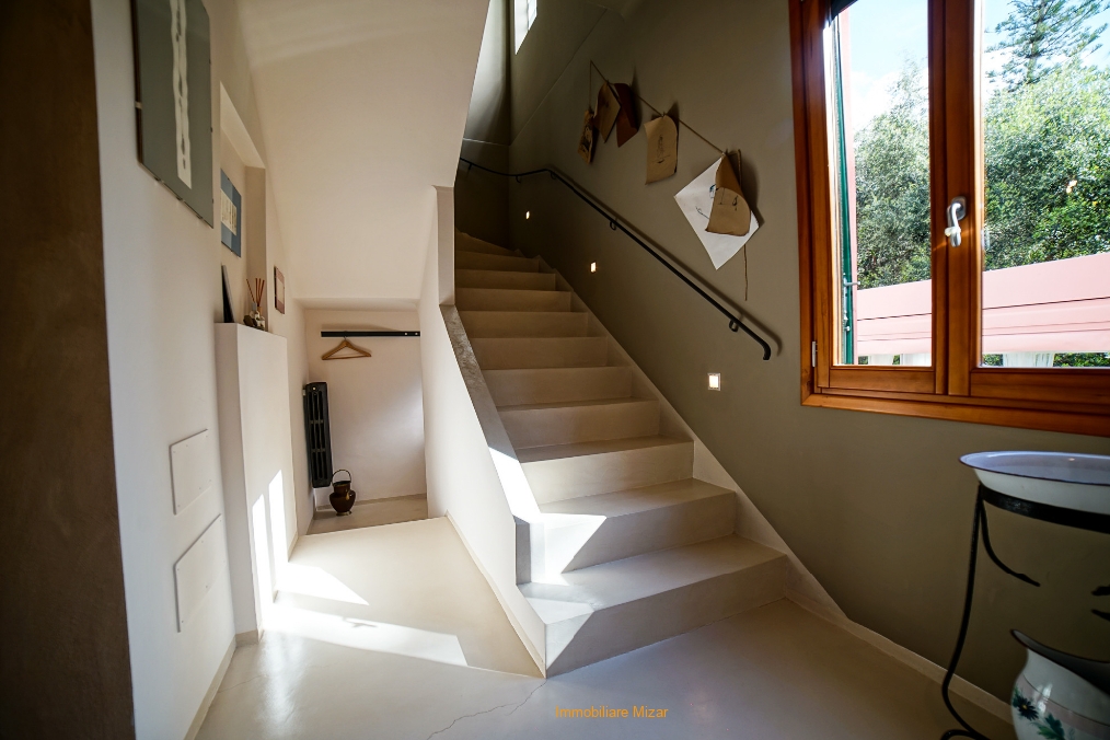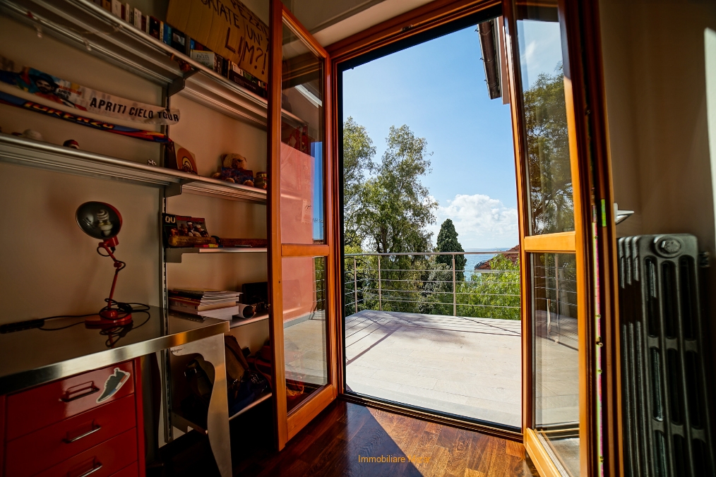 Al piano primo e secondo troviamo l'abitazione principale in cui si puo' apprezzare un salone semplicemente fantastico sia per finiture che per ariosità, una zona cucina, un bagno , al piano superiore la zona notte con tre stanze, bagno terrazza vista mare. Riscaldamento autonomo e ubicazione tranquilla in contesto signorile