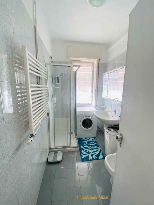 Bilocale al 4° p. con ascensore . Composto da>: INGRESSO CON CORRIDOIO, SALA , CUCINA, BAGNO FINESTRATO CON DOCCIA , CAMERA DA LETTO E LUNGA BALCONATA .