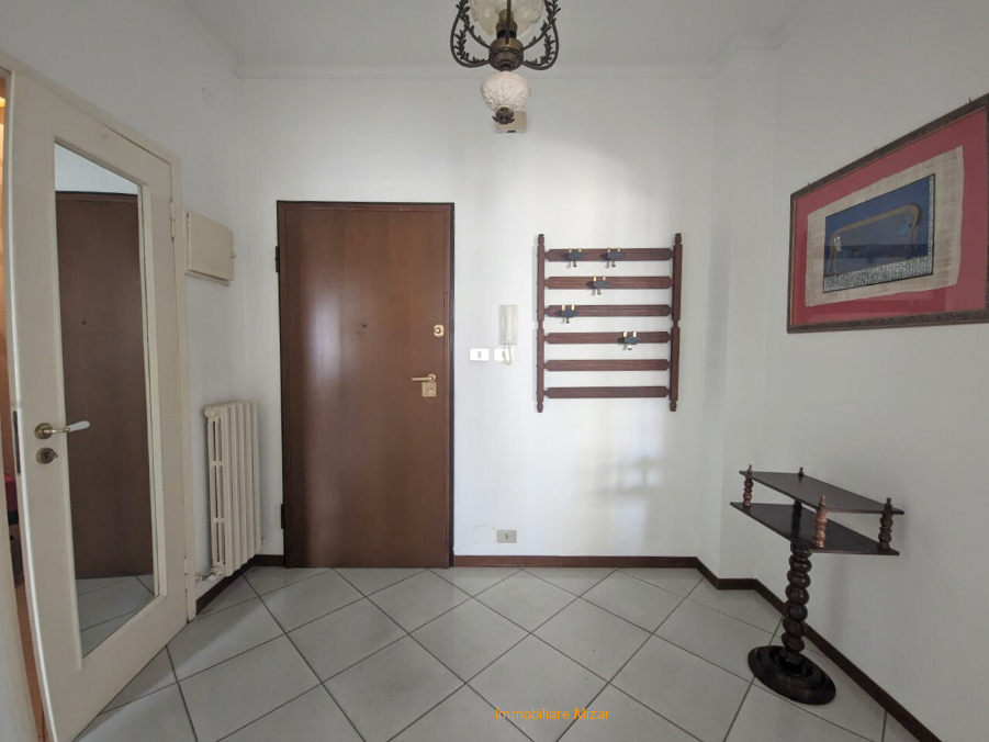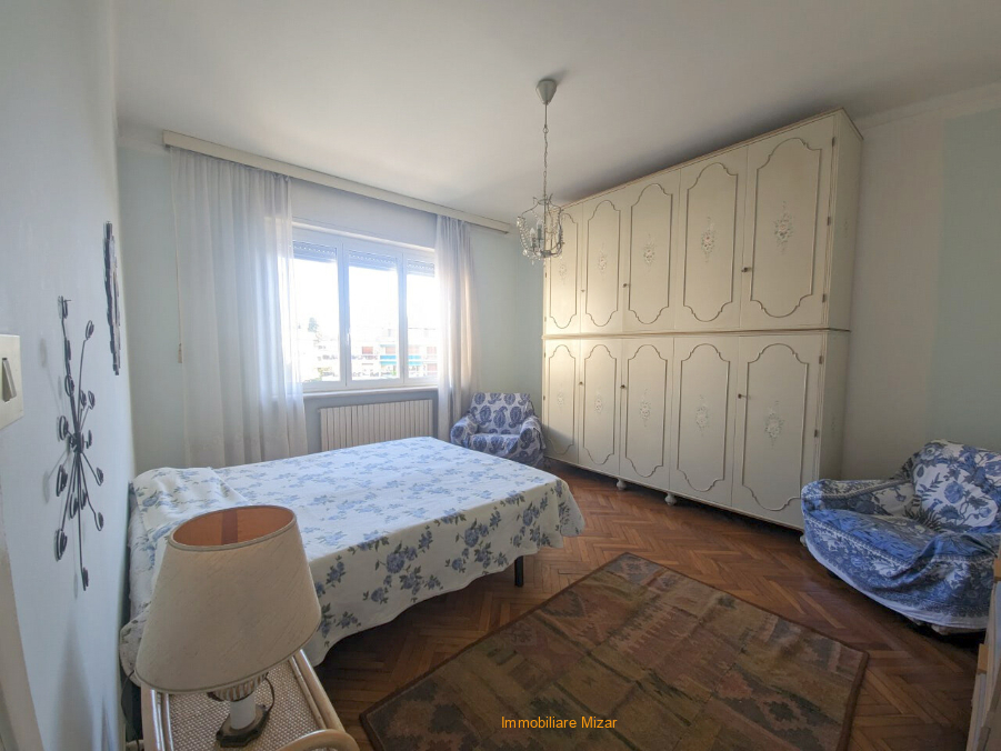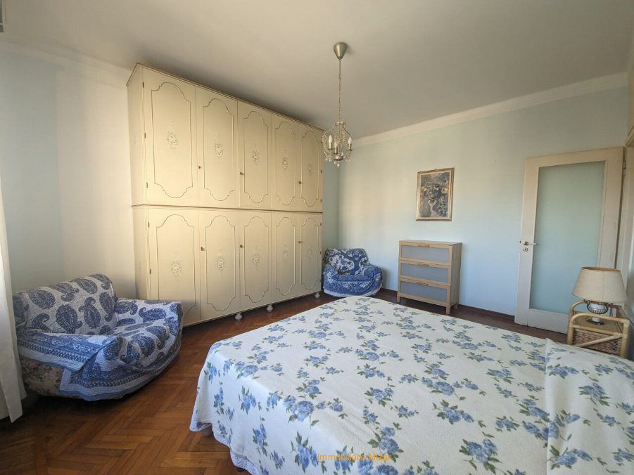 L’appartamento è ben distribuito: ingresso ampio, soggiorno, cucina abitabile, camera molto grande, bagno finestrato e ripostiglio. Gli spazi sono generosi per la tipologia e la pianta consente, per chi lo desiderasse, di ricavare una seconda camera trasformando la cucina e realizzando un angolo cottura nel soggiorno. Da tutte le stanze, affacciandosi, si coglie uno scorcio di mare verso destra. Il riscaldamento è autonomo, gli infissi sono stati sostituiti in alluminio con doppi vetri, le tubature di scarico del bagno sono state rifatte. Le restanti finiture sono quelle originali degli anni Sessanta: chi vuole intervenire trova un appartamento già funzionante, con la possibilità di personalizzarlo nel tempo.
