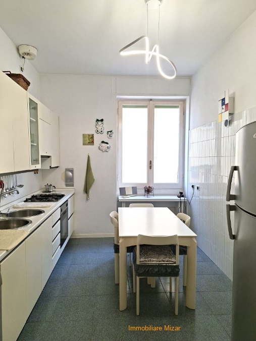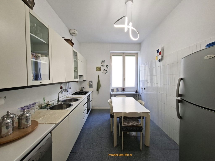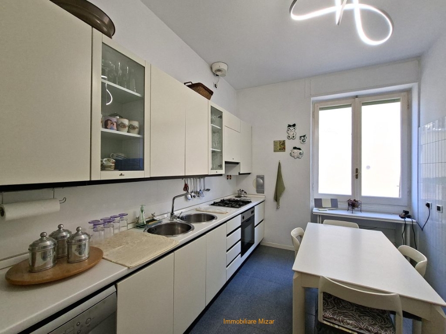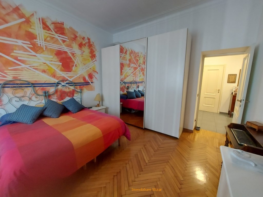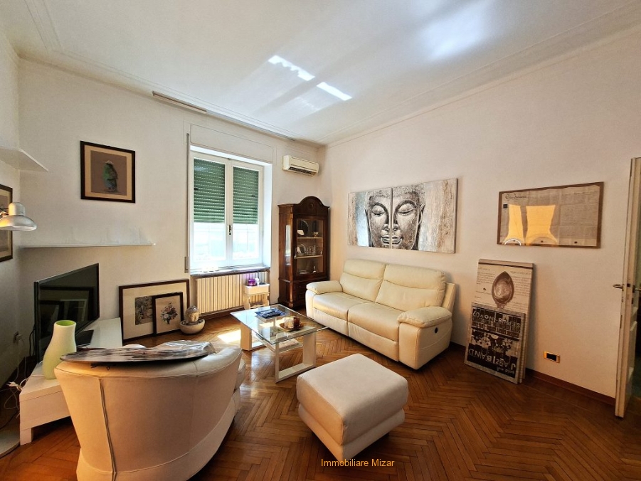 Q1 SAN - Sanremo, Via Marsaglia, a pochi passi da P. zza Colombo e dalle vie dello shopping, a 400 metri dal mare, proponiamo in esclusiva questa bello, accogliente e spazioso appartamento (mq. 140 circa) ubicato al secondo piano di piccolo stabile degli anni '50 senza ascensore. L'immobile, in perfette condizioni, è composto da ingresso, salone finestrato doppio (con aria condizionata) che affaccia sul balcone angolare, spaziosa cucina abitabile con arredi compresi nella vendita, 3 camere da letto (2 matrimoniali ed una singola grande), bagno principale con ampio box doccia e finestra, bagno di servizio e grande e comodissimo vano adibito a zona lavanderia arredato con un funzionale armadio a muro su misura, ripostiglio, balcone di servizio. L'immobile si presenta in ottime condizioni, con parquet nel salone e nelle stanze da letto e bagni appena rifatti. I serramenti sono con doppi vetri. L'esposizione è sud/ovest, con vista sulla città. Termoautonomo con caldaia a gas. Completa la proprietà una spaziosa cantina. Volendo, a parte, è in vendita un posto auto scoperto a 200 metri da casa. Un immobile ideale come prima casa, per chi ama la spaziosità e la centralità con tutte le comodità a portata di mano.