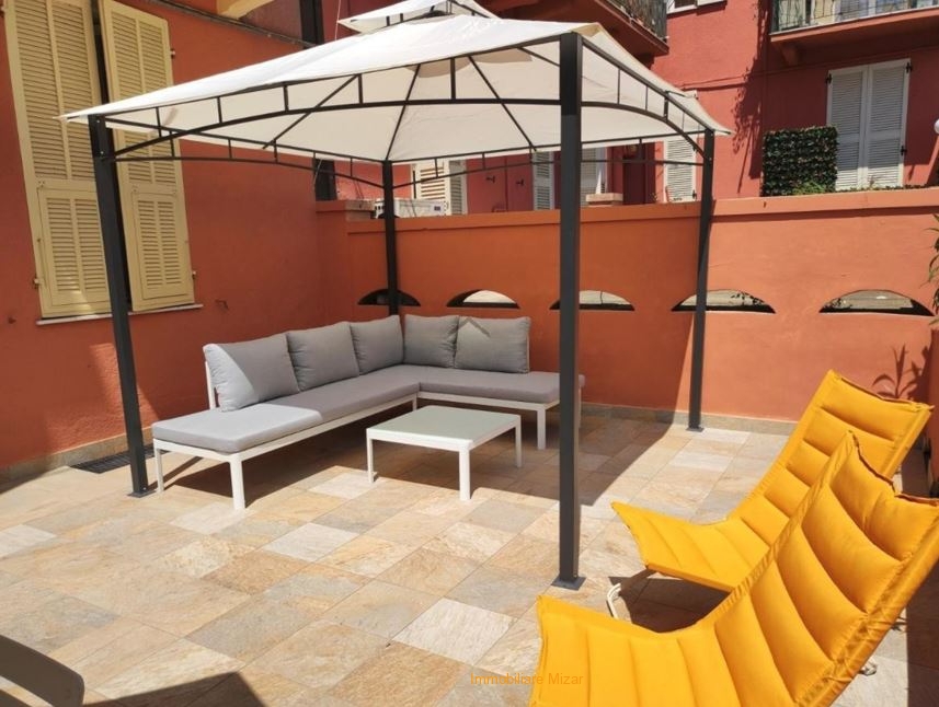 In posizione centralissima, in Via Pallavicino, al piano terreno di signorile palazzo d’epoca, appartamento di 100 M/2 interni composto di ingresso, soggiorno con angolo cottura, tre camere, due bagni finestrati, terrazzo giardino con ingresso indipendente frontale e grande terrazzo sul retro dell’appartamento tranquillo e zona relax.